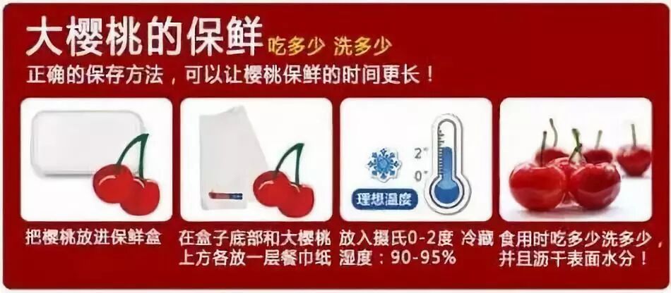 🌟如何保存:没有清洗过的樱桃,可以用塑胶袋包起,0℃-4℃冷藏于冰箱约可以保存7天。